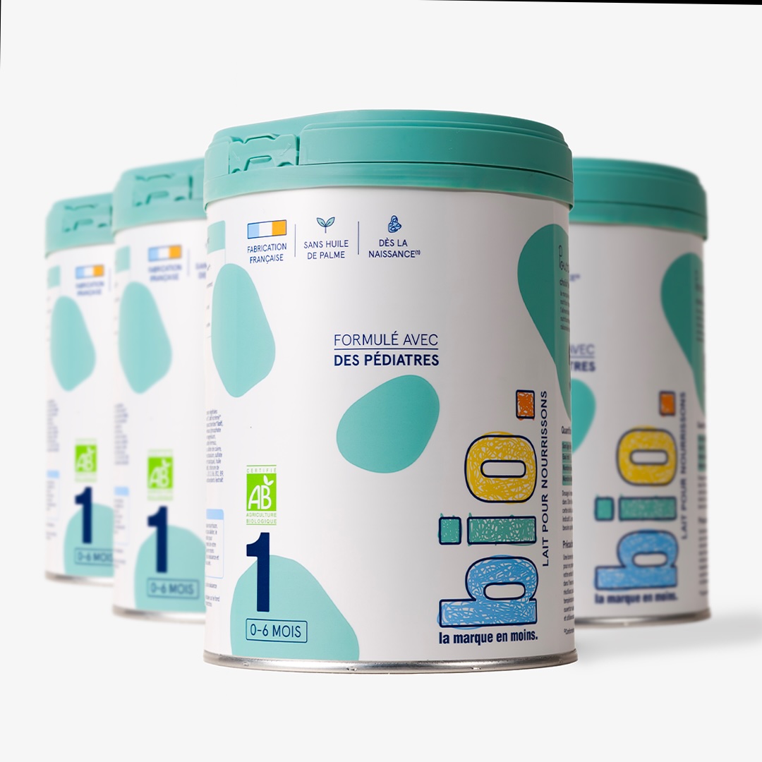 La marque en moins s'est associée à un laboratoire, expert de la nutrition infantile. Inspirée de plus de 100 ans de recherche sur l'alimentation des tous-petits, notre formule répond aux besoins nutritionnels de votre bébé tout en agissant pour une agriculture raisonnée et le respect de la biodiversité. Circuit court. Fabriqué avec du bon lait écrémé collecté localement, en France. GOS et FOS
